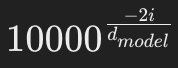 PE(pos, 2i) = sin( pos / (10000^(2i/d_model)) )